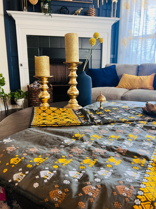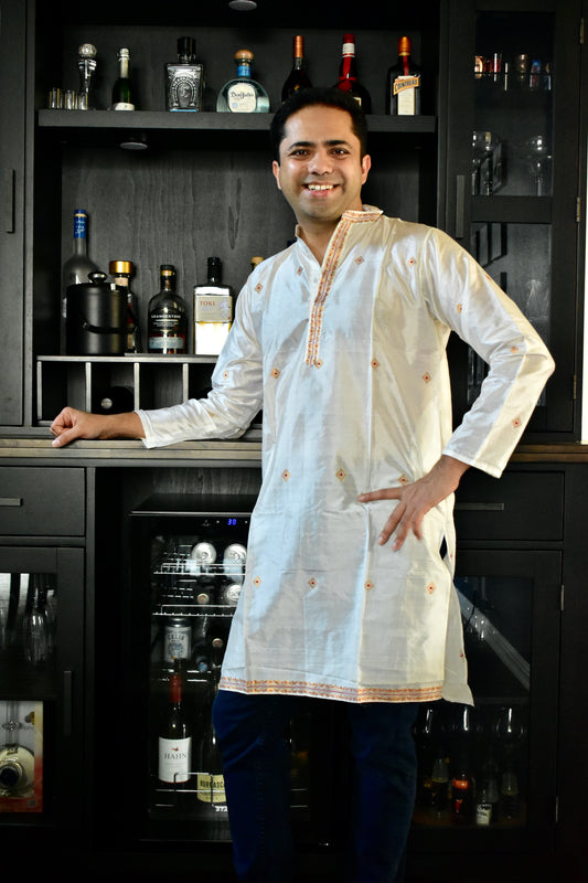 Handmade Men's Assam Silk (Paat) Kurta with Golden Motifs